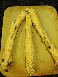 - Let dough rest 2-3 minutes. Meanwhile, lightly oil the bowl, put the dough in it and re-cover with the towel. Let dough rise in a warm place until it has tripled in size, 2-3 hours. Punch down dough, knead it a bit more, and cut it into two equal pieces. Cut each of the two pieces into three equal pieces (You should have 6 total pieces at this point). Roll each piece into a straight rope. Braid three ropes together and repeat so that you end up with two braided loaves. The pictures below aren’t from the pumpkin challah recipe-but use as a tutorial.